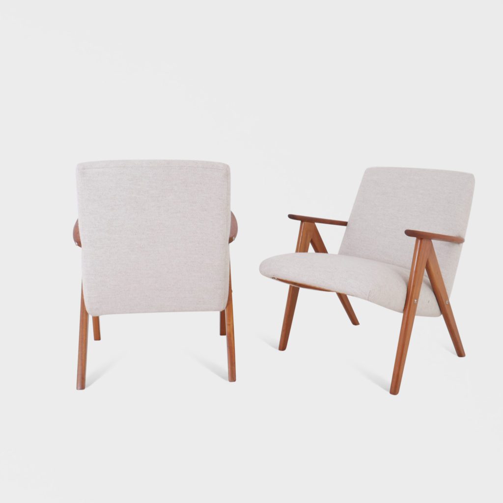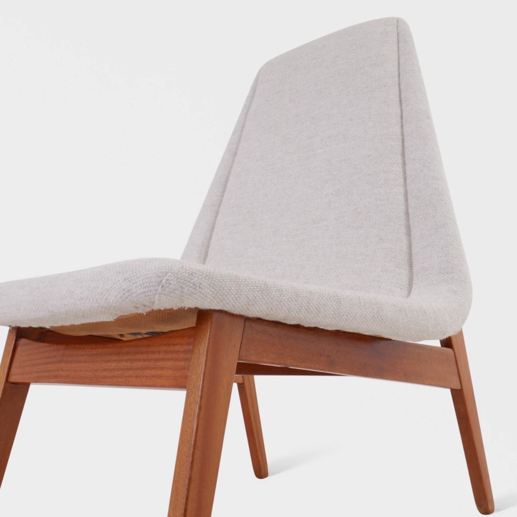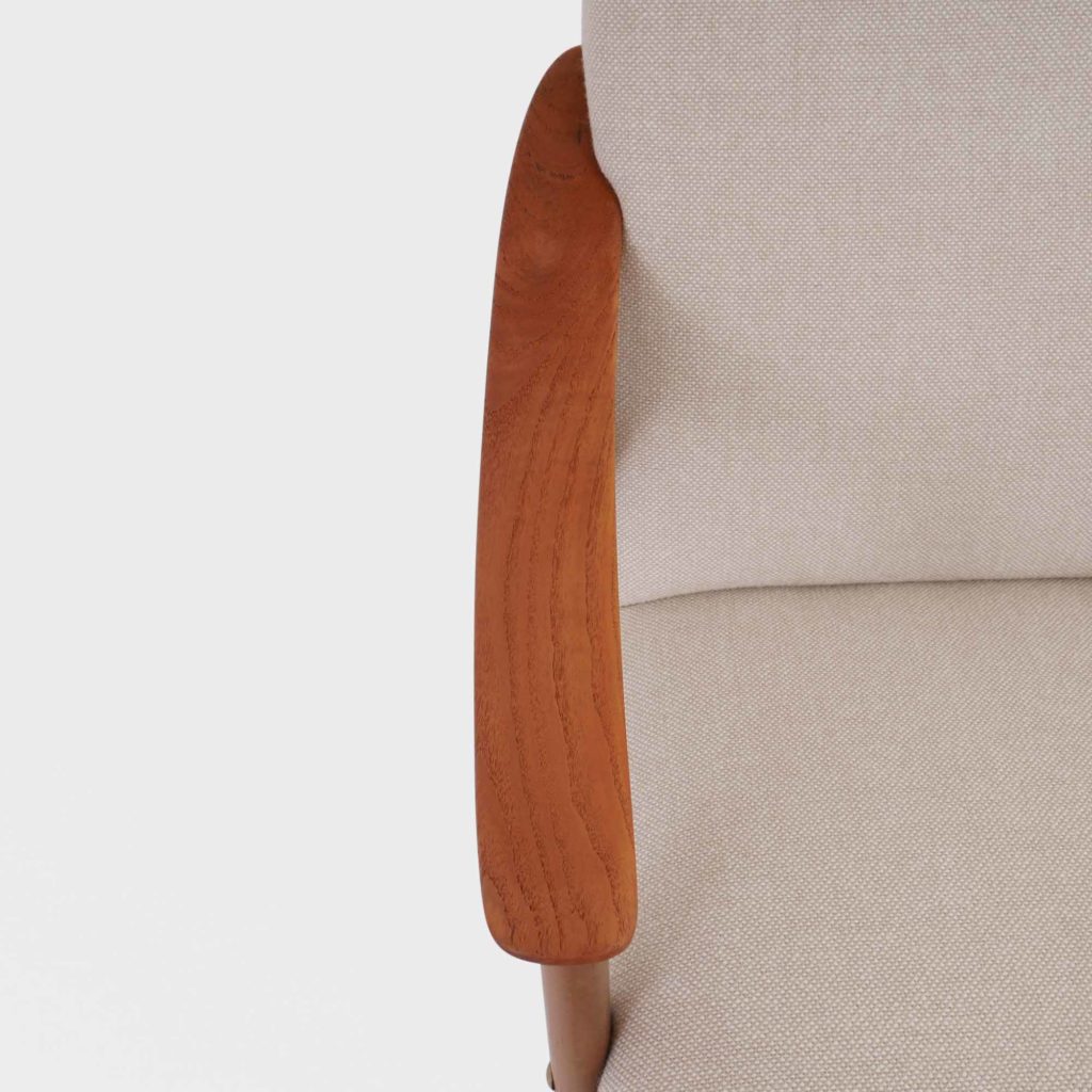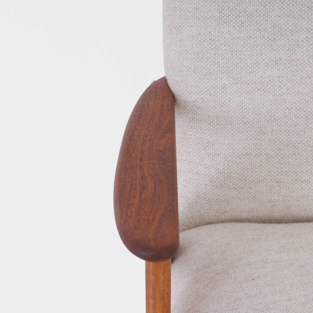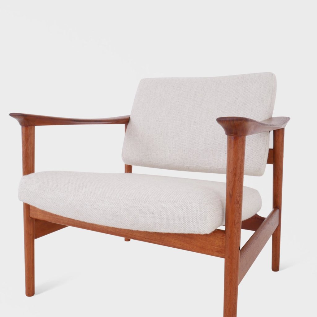 Elegante lenestoler med ukjent desginer og produsent. Nyomtrukket av vår møbeltapetserer i ullstoffet Amdal 122 fra Gudbrandsdalen Uldvarefabrik. Klassisk skandinavisk stil med behagelige finish. Prisen er per stol Designer: Ukjent Produsent: Ukjent Land: Norge År: 1960-tallet Tilstand: God vintage stand Mål: H:74cm H.sete:36cm B:61cm D:68cm Frakt: - Pris inkluderer frakt på strekningen Drammen - Oslo onsdager mellom 15-20 (til gateplan). - Vi sender i hele landet. Ta kontakt for gode priser på frakt. - Lageret er alltid åpent for besøk Tirsdag & Onsdag kl 14-17. Ring 926 22 989 ved ankomst. Disclaimer: Vintage møbler er et produkt av høy kvalitet som varer flere liv av en grunn. Noen har en rik historie, hvor enkelte produkter vil bære preg av dette. Studer derfor bildene godt før kjøp.
