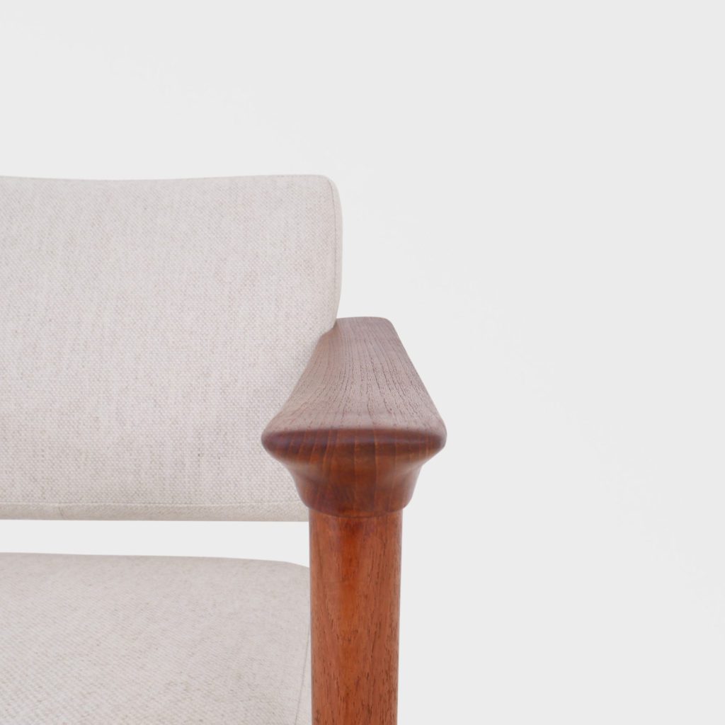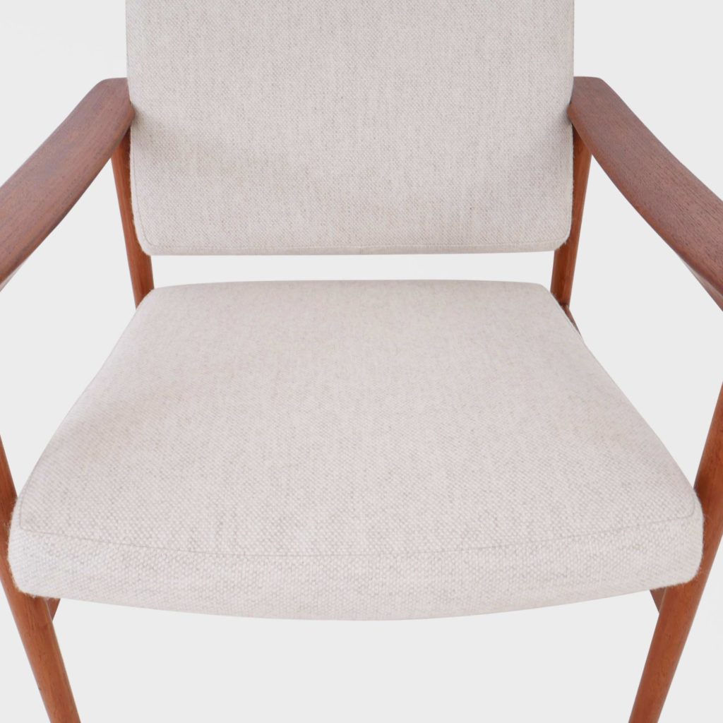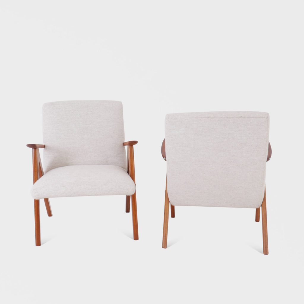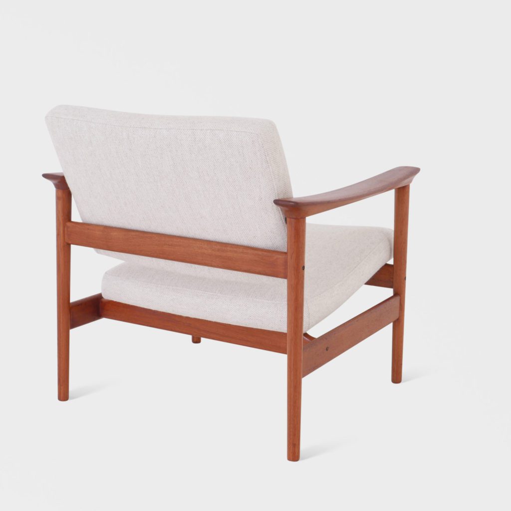 Elegante lenestoler med ukjent desginer og produsent. Nyomtrukket av vår møbeltapetserer i ullstoffet Amdal 122 fra Gudbrandsdalen Uldvarefabrik. Klassisk skandinavisk stil med behagelige finish. Prisen er per stol Designer: Ukjent Produsent: Ukjent Land: Norge År: 1960-tallet Tilstand: God vintage stand Mål: H:74cm H.sete:36cm B:61cm D:68cm Frakt: - Pris inkluderer frakt på strekningen Drammen - Oslo onsdager mellom 15-20 (til gateplan). - Vi sender i hele landet. Ta kontakt for gode priser på frakt. - Lageret er alltid åpent for besøk Tirsdag & Onsdag kl 14-17. Ring 926 22 989 ved ankomst. Disclaimer: Vintage møbler er et produkt av høy kvalitet som varer flere liv av en grunn. Noen har en rik historie, hvor enkelte produkter vil bære preg av dette. Studer derfor bildene godt før kjøp.