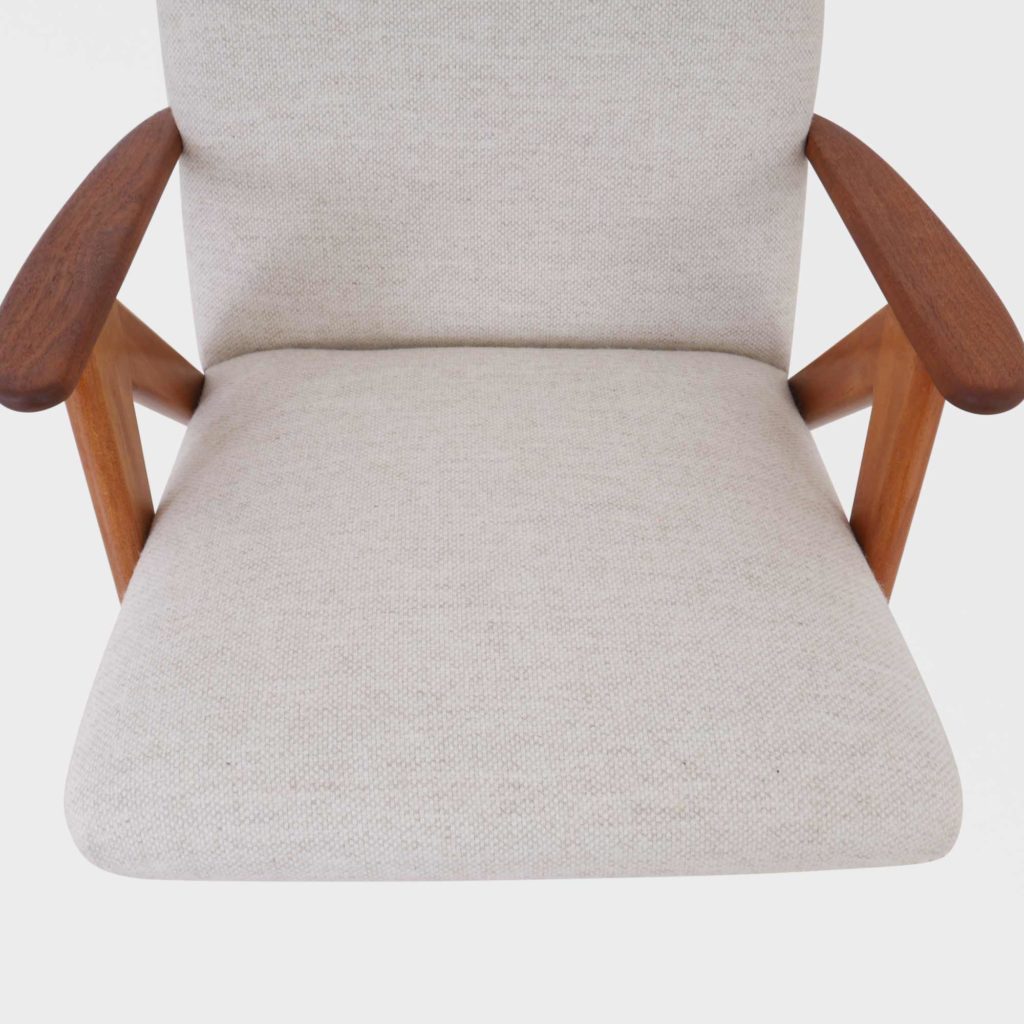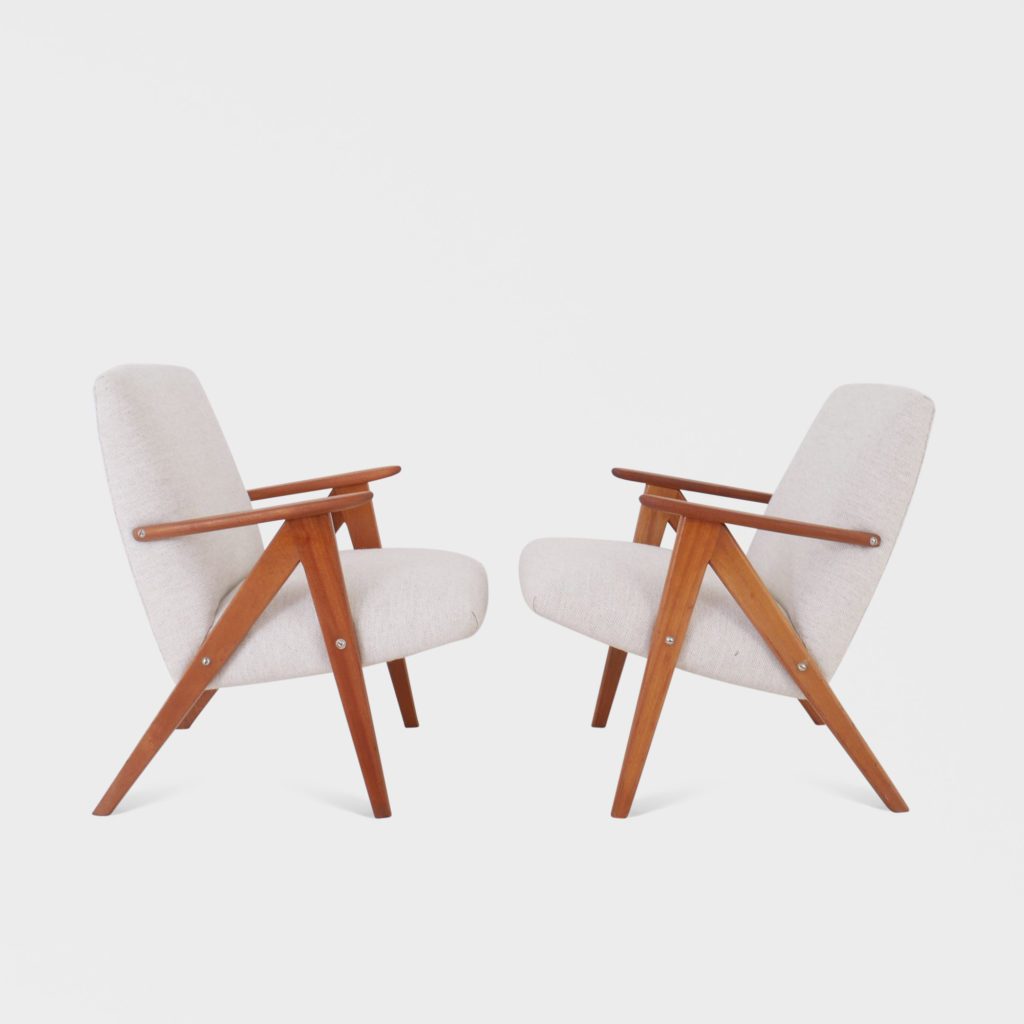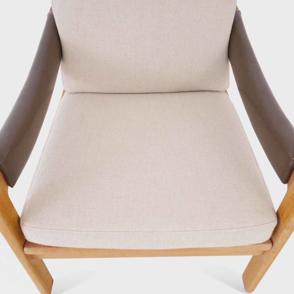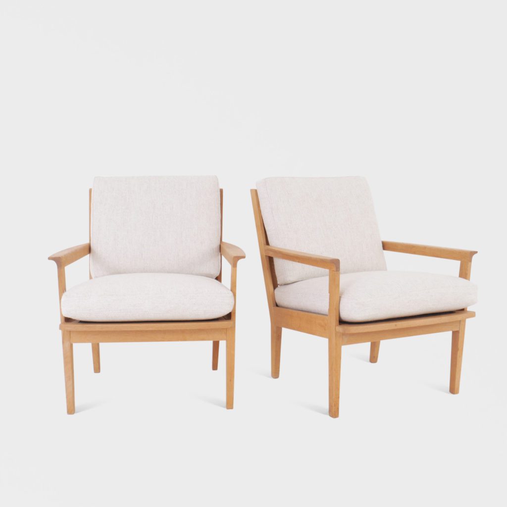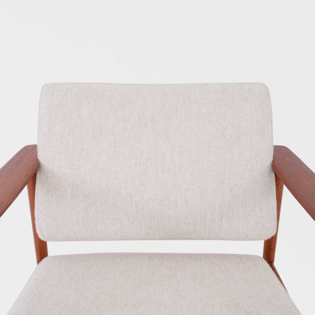 Elegante lenestoler med ukjent desginer og produsent. Nyomtrukket av vår møbeltapetserer i ullstoffet Amdal 122 fra Gudbrandsdalen Uldvarefabrik. Klassisk skandinavisk stil med behagelige finish. Prisen er per stol Designer: Ukjent Produsent: Ukjent Land: Norge År: 1960-tallet Tilstand: God vintage stand Mål: H:74cm H.sete:36cm B:61cm D:68cm Frakt: - Pris inkluderer frakt på strekningen Drammen - Oslo onsdager mellom 15-20 (til gateplan). - Vi sender i hele landet. Ta kontakt for gode priser på frakt. - Lageret er alltid åpent for besøk Tirsdag & Onsdag kl 14-17. Ring 926 22 989 ved ankomst. Disclaimer: Vintage møbler er et produkt av høy kvalitet som varer flere liv av en grunn. Noen har en rik historie, hvor enkelte produkter vil bære preg av dette. Studer derfor bildene godt før kjøp.