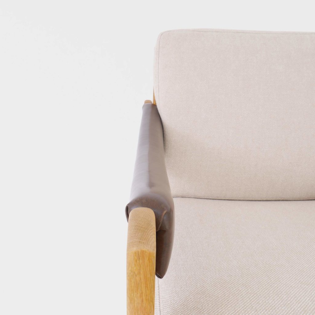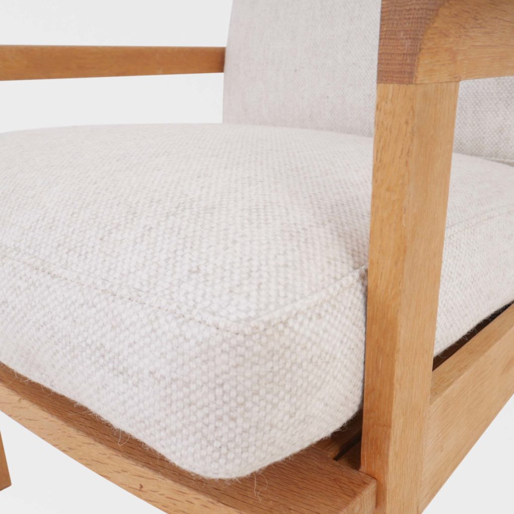 Vakker lenestol i god kvalitet. Nyomtrukket av vår møbeltapetserer i ullstoffet Amdal 122 av Gudbrandsdalen Uldvarefabrik. Ramme pusset og behandlet med hvitpigmentert hardvoksolje fra Osmo, En nydelig form som sitter godt i rommet. Produsent: Emdal & Co Land: Norge År: 1960-tallet Tilstand: God vintage stand Mål: H:100cm H.sete:40cm B:67cm D:80cm Frakt: - Pris inkluderer frakt på strekningen Drammen - Oslo onsdager mellom 15-20 (til gateplan). - Vi sender i hele landet. Ta kontakt for gode priser på frakt. - Lageret er alltid åpent for besøk Tirsdag & Onsdag kl 14-17. Ring 926 22 989 ved ankomst. Disclaimer: Vintage møbler er et produkt av høy kvalitet som varer flere liv av en grunn. Noen har en rik historie, hvor enkelte produkter vil bære preg av dette. Studer derfor bildene godt før kjøp.