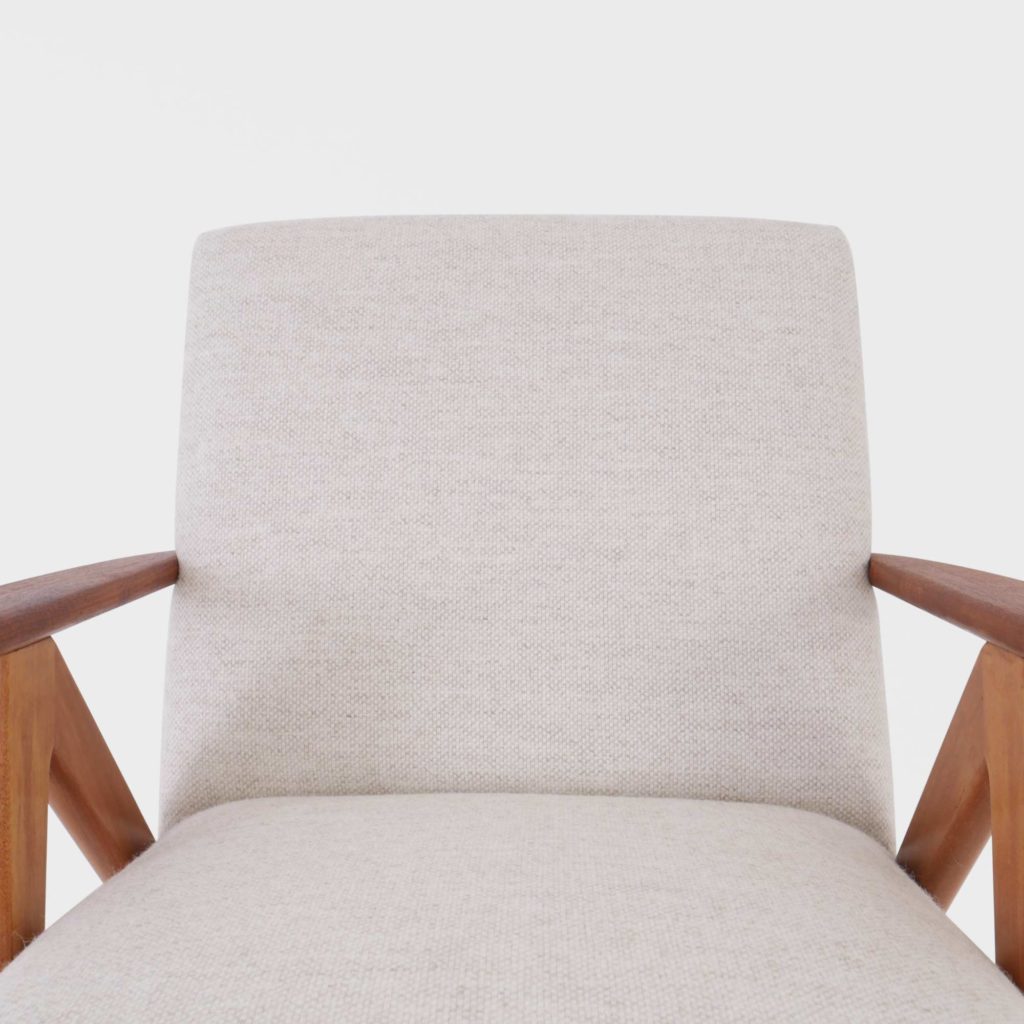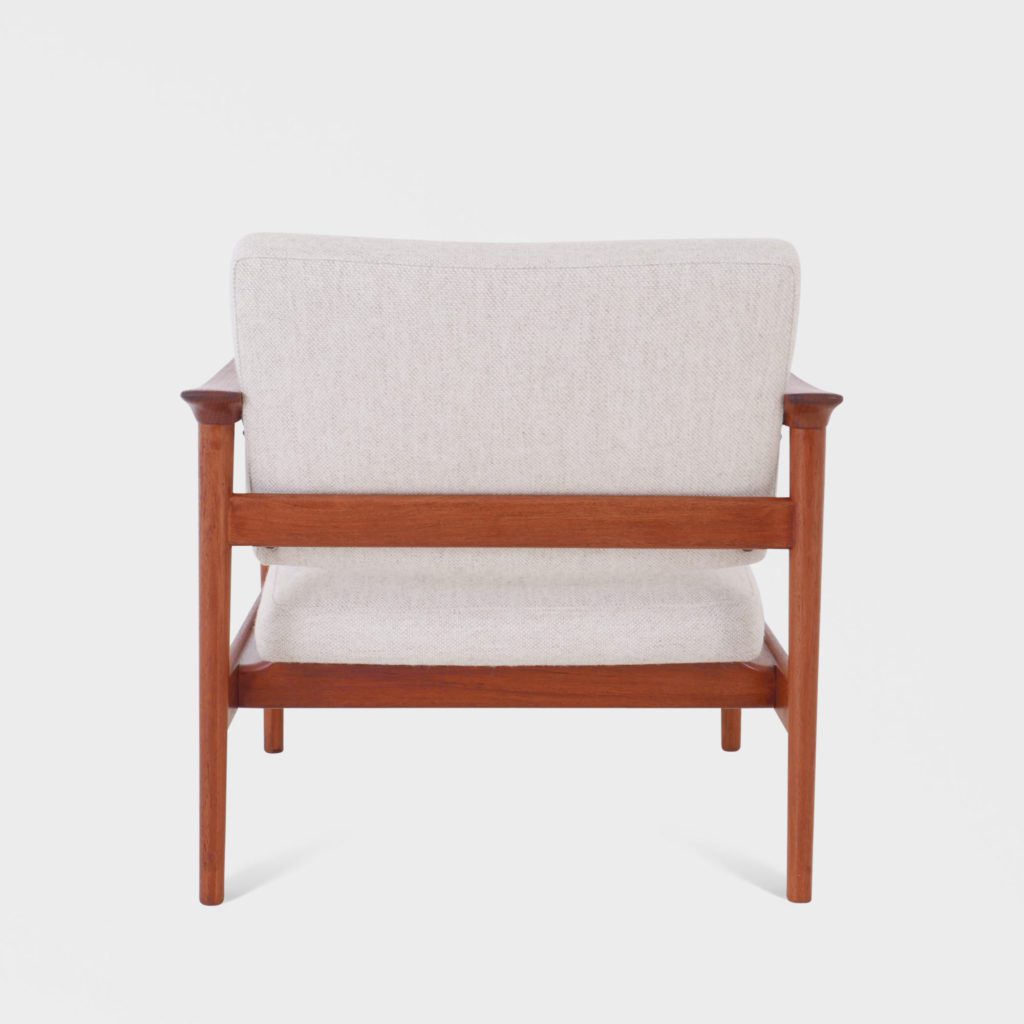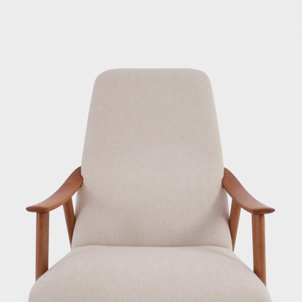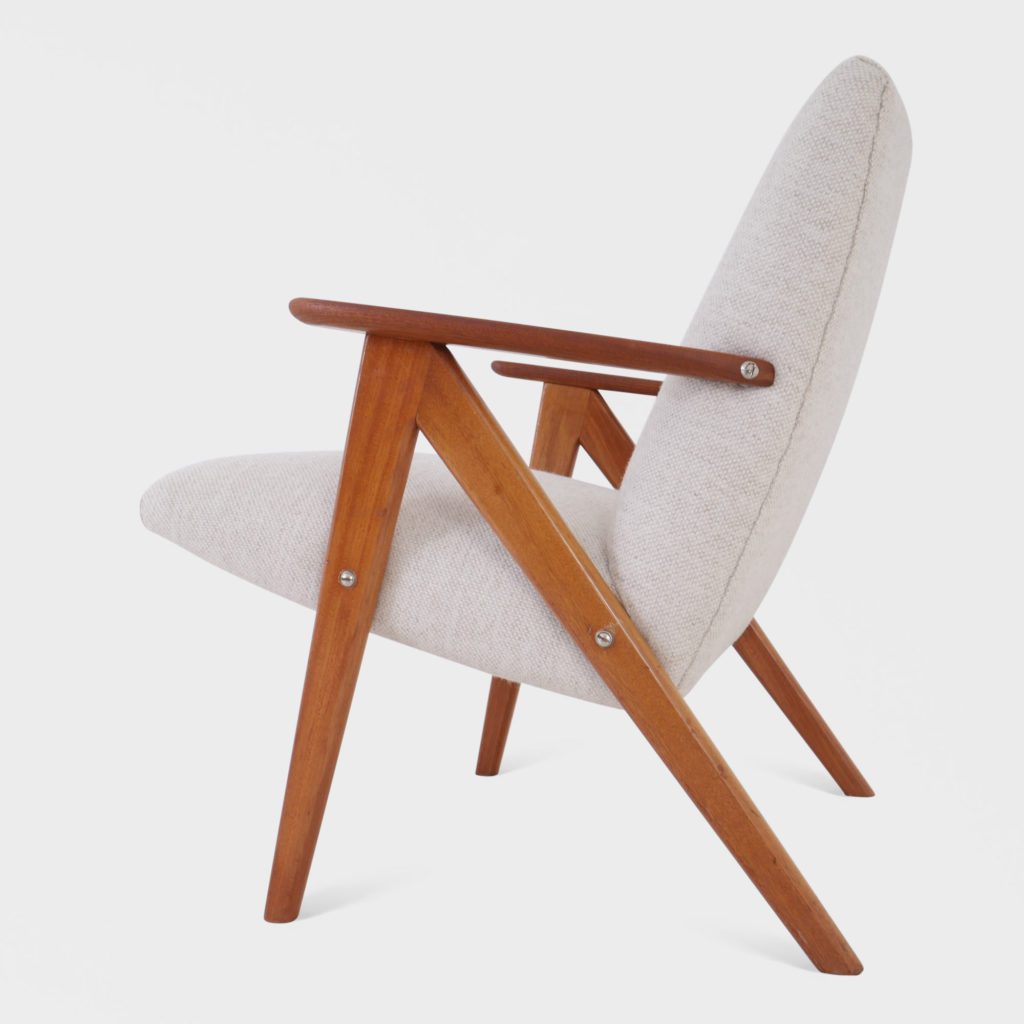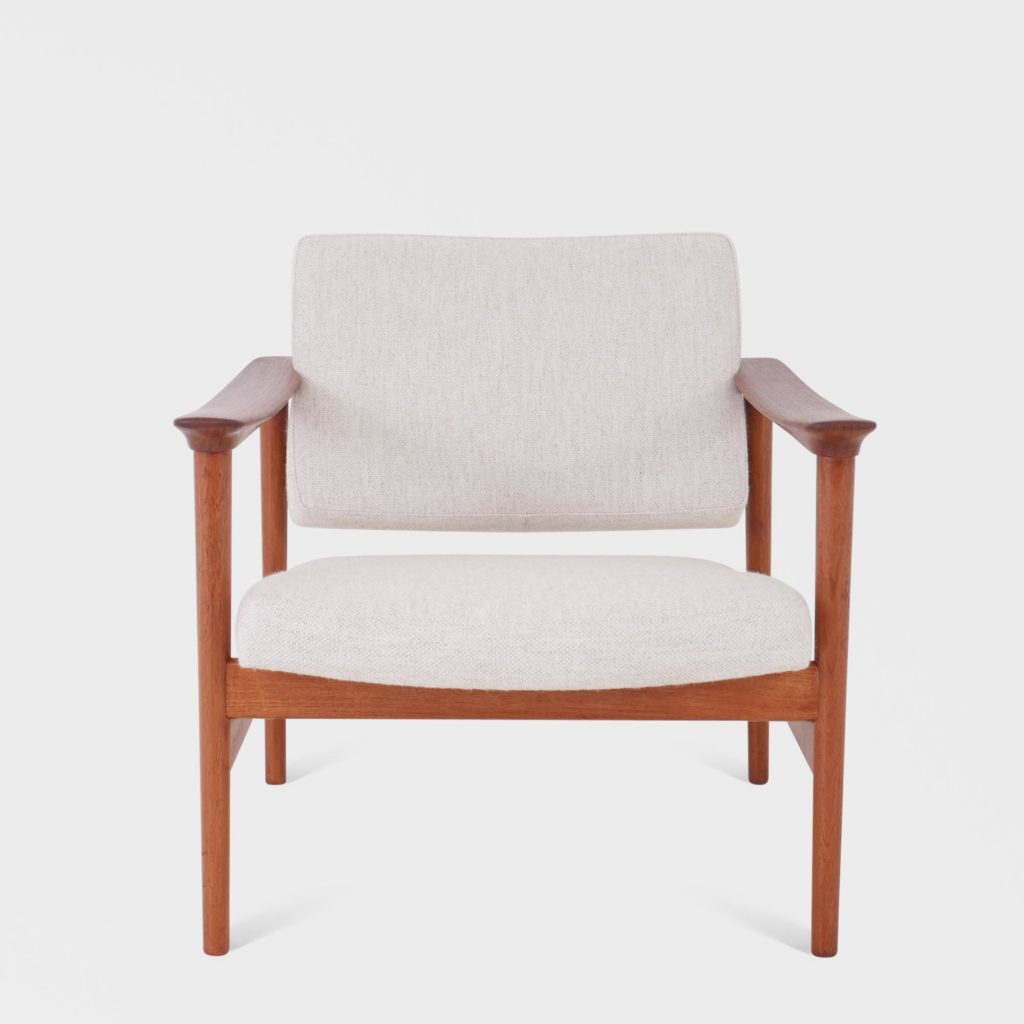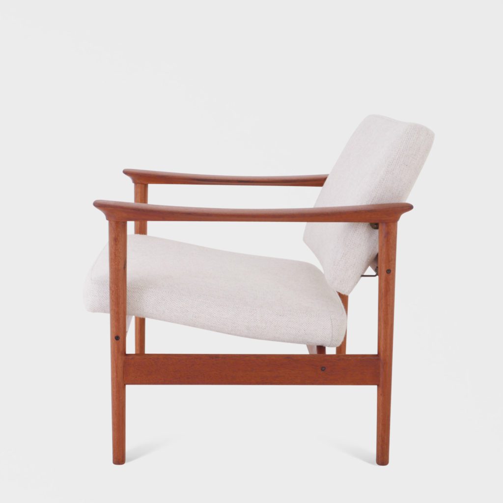 Elegant lenestol med ukjent desginer og produsent. Nyomtrukket av vår møbeltapetserer i ullstoffet Hallingdal 220 fra Gudbrandsdalen Uldvarefabrik. Klassisk skandinavisk stil av høy kvalitet med behagelige finish. Designer: Ukjent Produsent: Ukjent Land: Norge År: 1960-tallet Tilstand: God vintage stand Mål: H:71cm H.sete:36cm B:66cm D:81cm Frakt: - Pris inkluderer frakt på strekningen Drammen - Oslo onsdager mellom 15-20 (til gateplan). - Vi sender i hele landet. Ta kontakt for gode priser på frakt. - Lageret er alltid åpent for besøk Tirsdag & Onsdag kl 14-17. Ring 926 22 989 ved ankomst. Disclaimer: Vintage møbler er et produkt av høy kvalitet som varer flere liv av en grunn. Noen har en rik historie, hvor enkelte produkter vil bære preg av dette. Studer derfor bildene godt før kjøp.