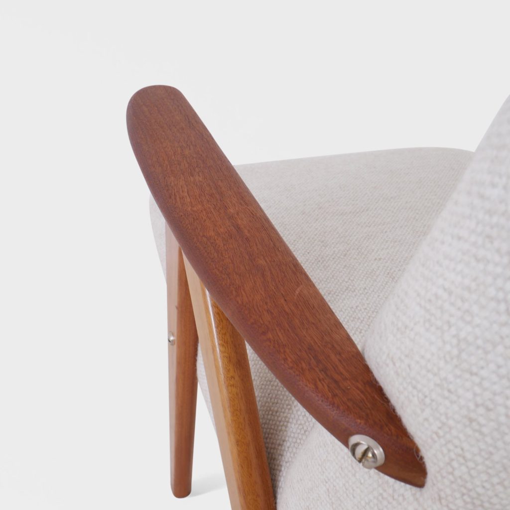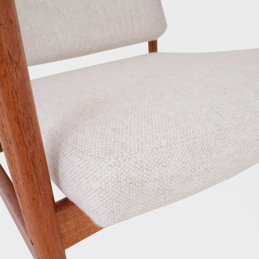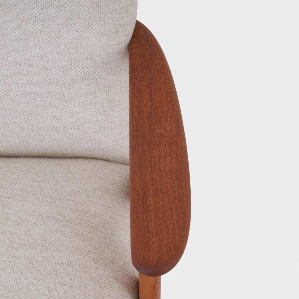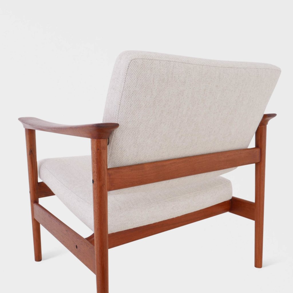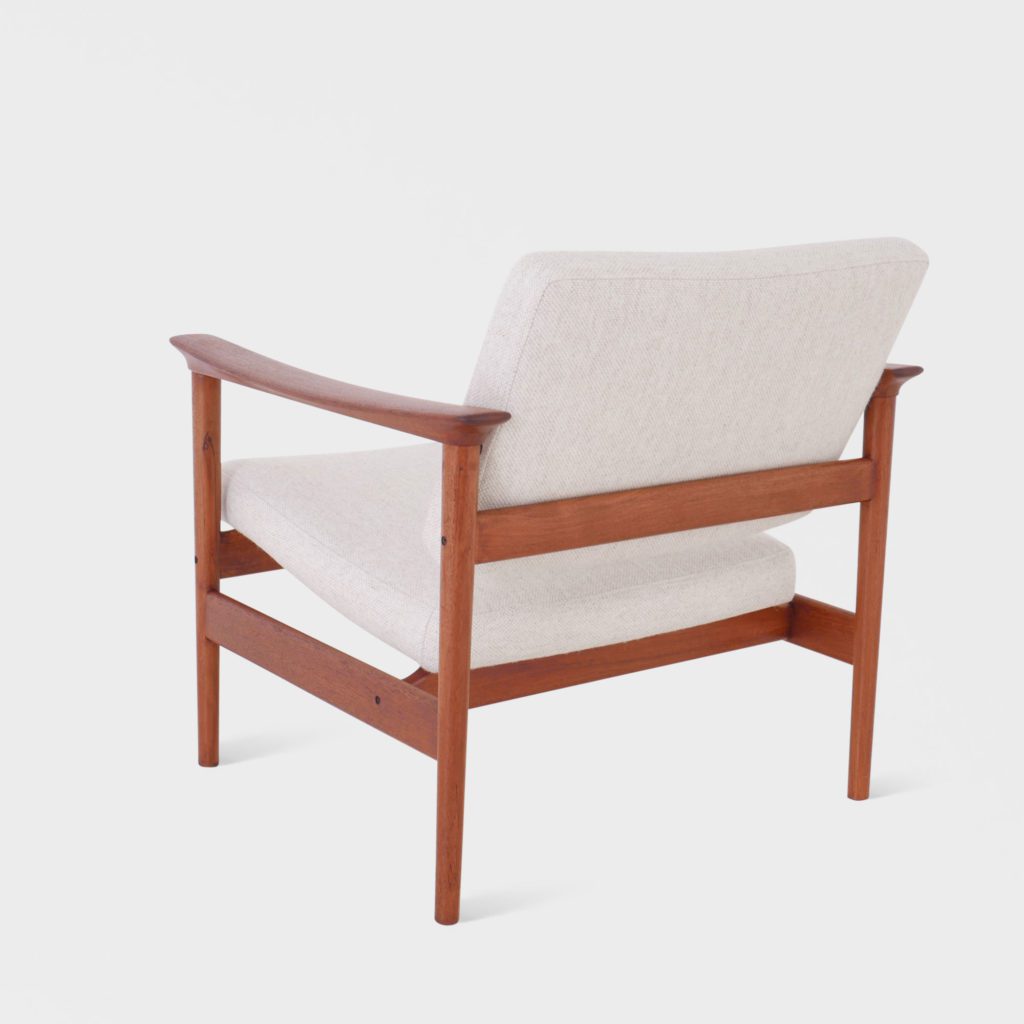 Sjelden modell designet av Torbjørn Afdal for Bruksbo Tegnekontor og produsert hos Sandvik & Co. Stolen er nyomtrukket av vår møbeltapetserer med Ullstoffet Amdal 122 fra Gudbrandsdalen Uldvarefabrik. Designer: Torbjørn Afdal Produsent: Sandvik & Co Land: Norge År: 1960-tallet Tilstand: God vintage stand Mål: H: 74cm H.sitte: 40cm B: 70cm D: 75cm Frakt: - Pris inkluderer frakt på strekningen Drammen - Oslo onsdager mellom 15-20 (til gateplan). - Vi sender i hele landet. Ta kontakt for gode priser på frakt. - Lageret er alltid åpent for besøk Tirsdag & Onsdag kl 14-17. Ring 926 22 989 ved ankomst. Disclaimer: Vintage møbler er et produkt av høy kvalitet som varer flere liv av en grunn. Noen har en rik historie, hvor enkelte produkter vil bære preg av dette. Studer derfor bildene godt før kjøp.