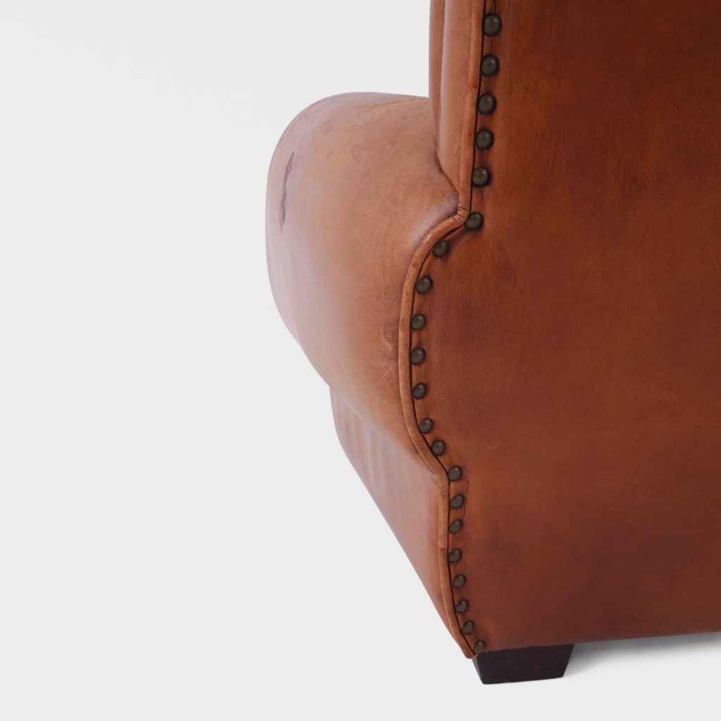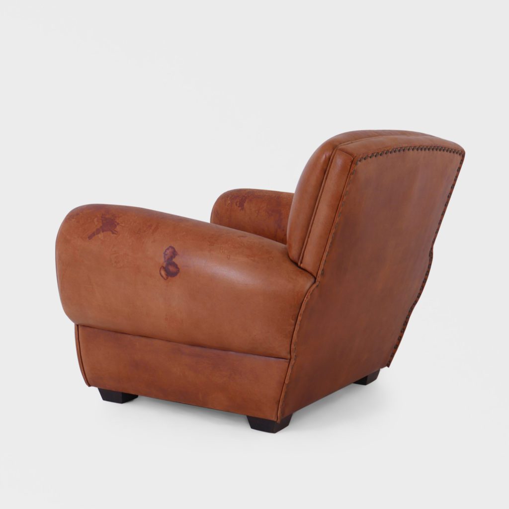 Unik lenestol i cagnacfarget skai. Designer: Ukjent Produsent: Ukjent Land: Norge År: 1950-tallet Tilstand: God vintage stand Mål: H:78cm H.sete:36cm B:68cm D:80cm Frakt: - Pris inkluderer frakt på strekningen Drammen - Oslo onsdager mellom 15-20 (til gateplan). - Vi sender i hele landet. Ta kontakt for gode priser på frakt. - Lageret er alltid åpent for besøk Tirsdag & Onsdag kl 14-17. Ring 926 22 989 ved ankomst. Disclaimer: Vintage møbler er et produkt av høy kvalitet som varer flere liv av en grunn. Noen har en rik historie, hvor enkelte produkter vil bære preg av dette. Studer derfor bildene godt før kjøp.