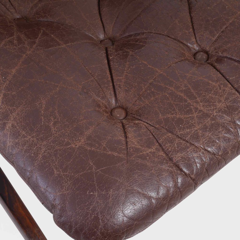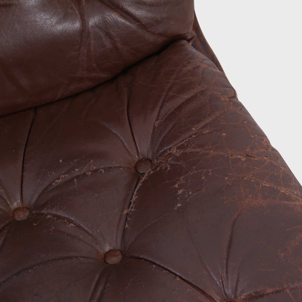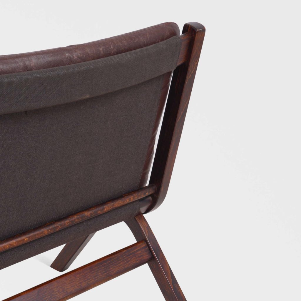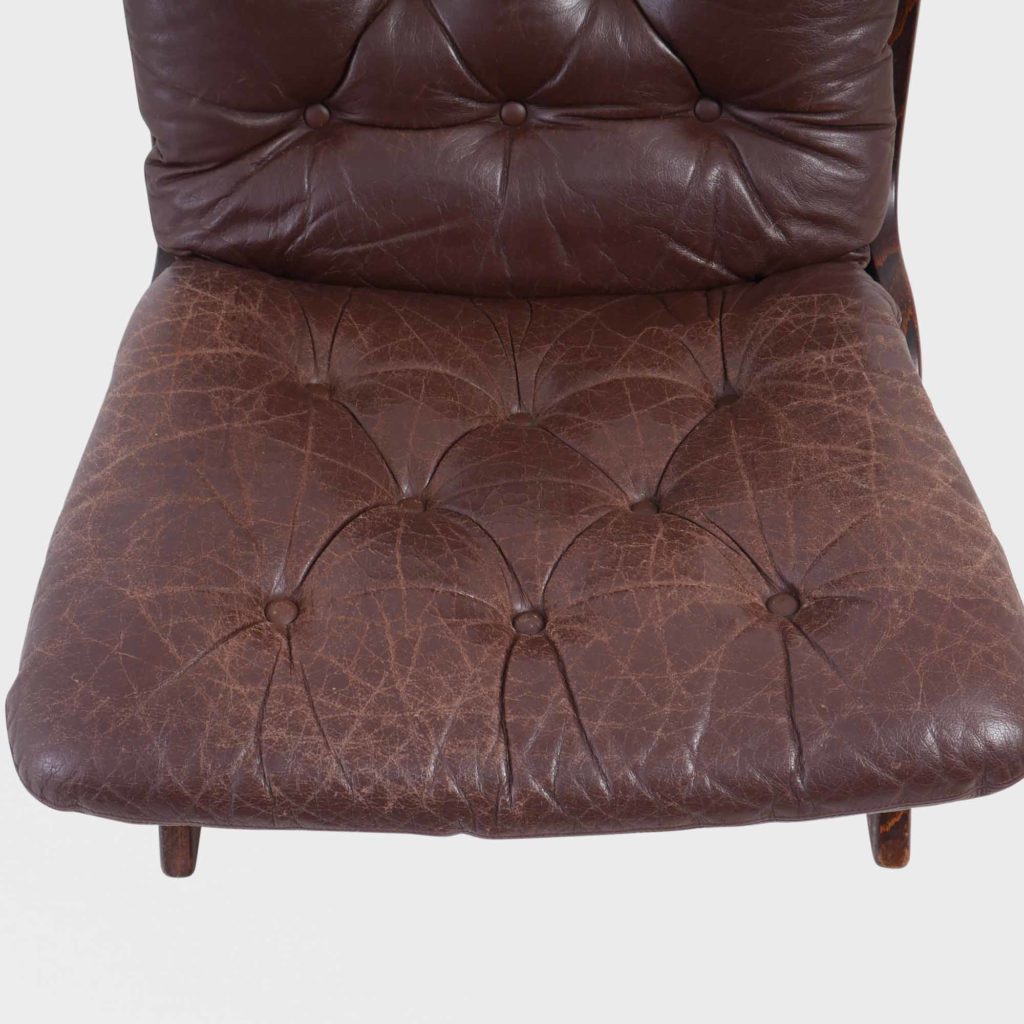 Retro lenestoler produsert av Norske Ekornes og designet av Per Leiv Øie. Brunt skinn. God sittekomfort og en praktisk sammenleggbar konstruksjon. Skinnet har bruksmerker og prisen reflekterer dette. Enkle å plassere. Stolene selges samlet og prisen er for begge Designer: Per Leiv Øie Produsent: Ekornes Land: Norge År: 1970-tallet Mål: H:72cm H.sete:36cm B:60cm D:70cm Frakt: - Pris inkluderer frakt på strekningen Drammen - Oslo onsdager mellom 15-20 (til gateplan). - Vi sender i hele landet. Ta kontakt for gode priser på frakt. - Lageret er alltid åpent for besøk Tirsdag & Onsdag kl 14-17. Ring 926 22 989 ved ankomst. Disclaimer: Vintage møbler er et produkt av høy kvalitet som varer flere liv av en grunn. Noen har en rik historie, hvor enkelte produkter vil bære preg av dette. Studer derfor bildene godt før kjøp.