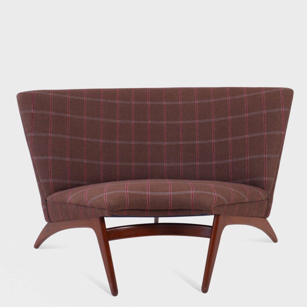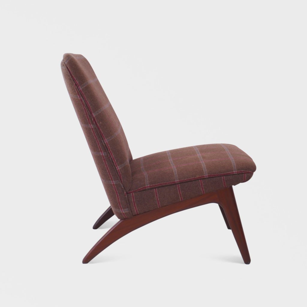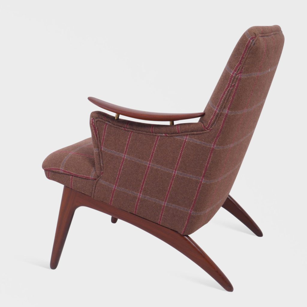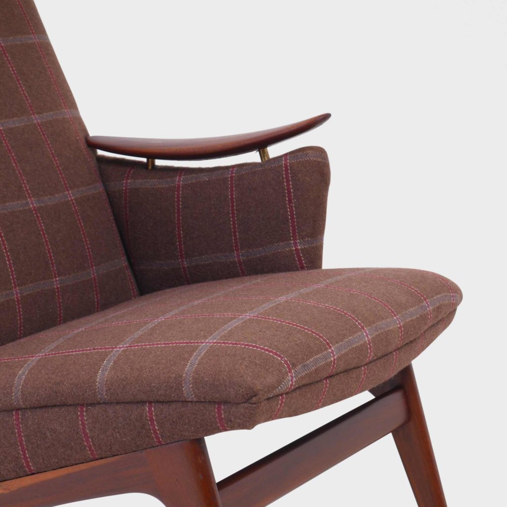 Unik lenestol i teak nyomtrukket av vår møbeltapetserer med møbelstoff i boucle. Barnum Stripe fra Nevotex. Klassisk skandinavisk stil av høy kvalitet med behagelige finish. Tilstand: God vintage stand Mål: H: 89cm H sitte: 37cm B: 66cm D: 65cm Frakt: - Pris inkluderer frakt på strekningen Drammen - Oslo onsdager mellom 15-20 (til gateplan). - Vi sender i hele landet. Ta kontakt for gode priser på frakt. - Lageret er alltid åpent for besøk Tirsdag & Onsdag kl 14-17. Ring 926 22 989 ved ankomst. Disclaimer: Vintage møbler er et produkt av høy kvalitet som varer flere liv av en grunn. Noen har en rik historie, hvor enkelte produkter vil bære preg av dette. Studer derfor bildene godt før kjøp.