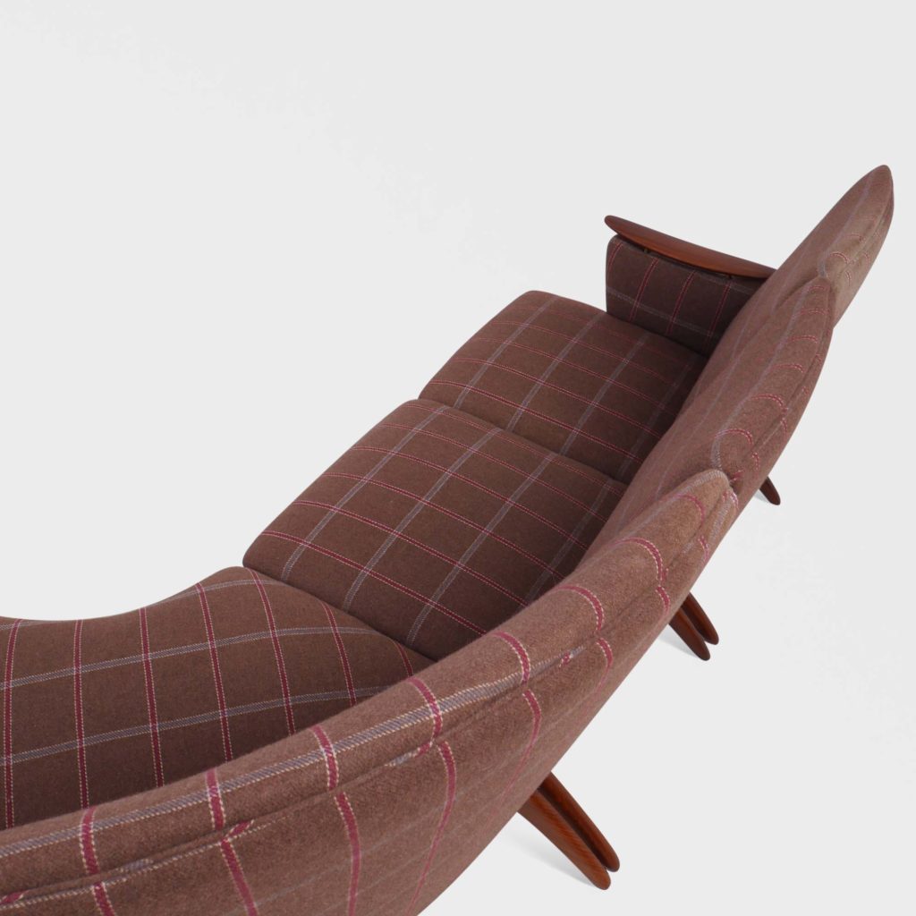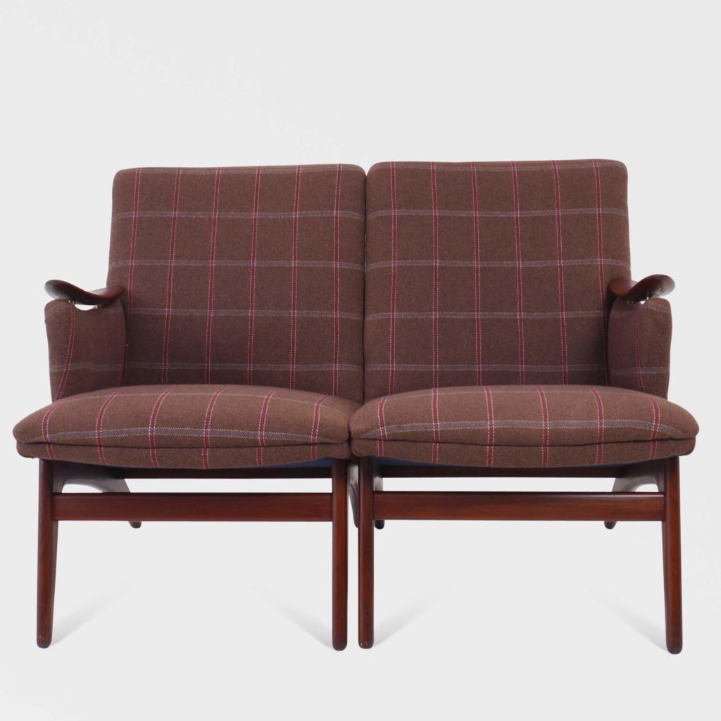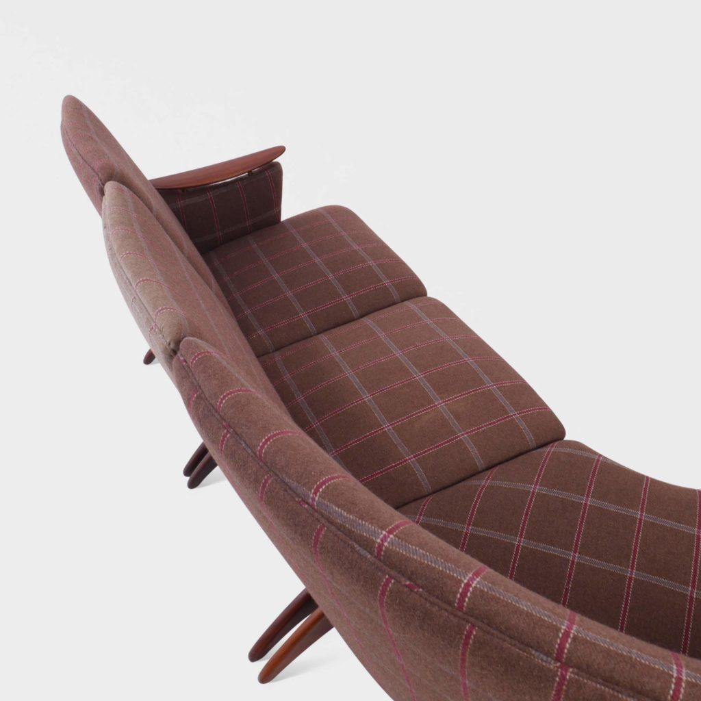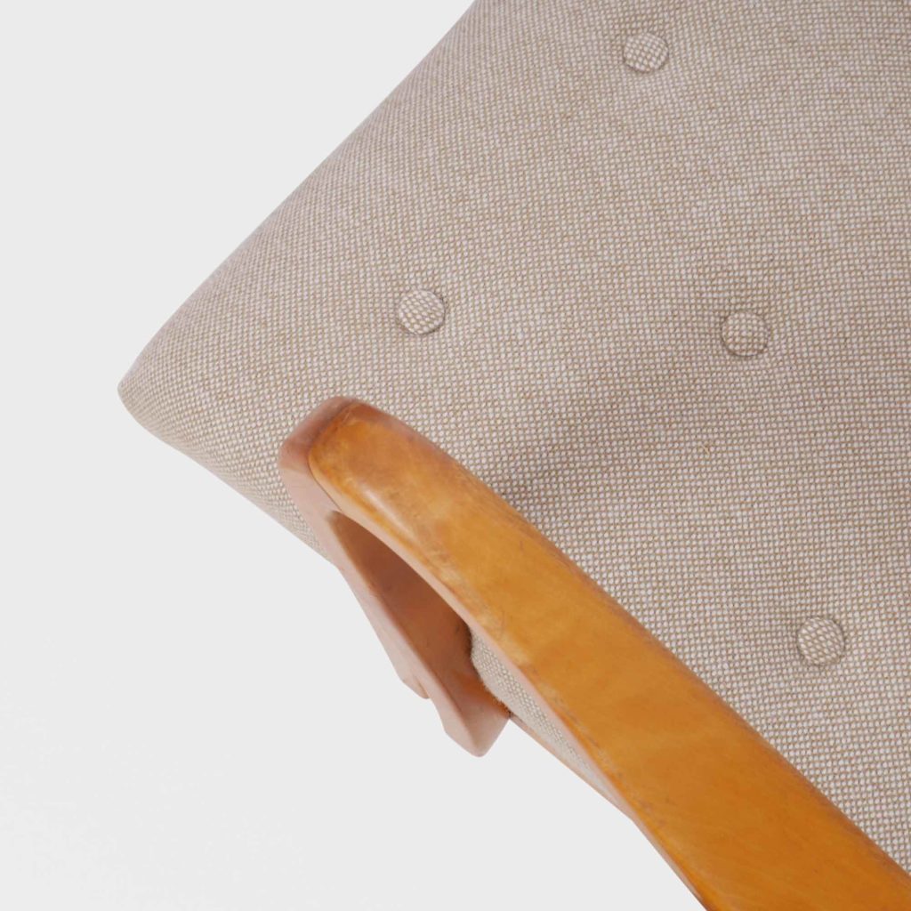 Unik lenestol i teak nyomtrukket av vår møbeltapetserer med møbelstoff i boucle. Barnum Stripe fra Nevotex. Klassisk skandinavisk stil av høy kvalitet med behagelige finish. Tilstand: God vintage stand Mål: H: 89cm H sitte: 37cm B: 66cm D: 65cm Frakt: - Pris inkluderer frakt på strekningen Drammen - Oslo onsdager mellom 15-20 (til gateplan). - Vi sender i hele landet. Ta kontakt for gode priser på frakt. - Lageret er alltid åpent for besøk Tirsdag & Onsdag kl 14-17. Ring 926 22 989 ved ankomst. Disclaimer: Vintage møbler er et produkt av høy kvalitet som varer flere liv av en grunn. Noen har en rik historie, hvor enkelte produkter vil bære preg av dette. Studer derfor bildene godt før kjøp.