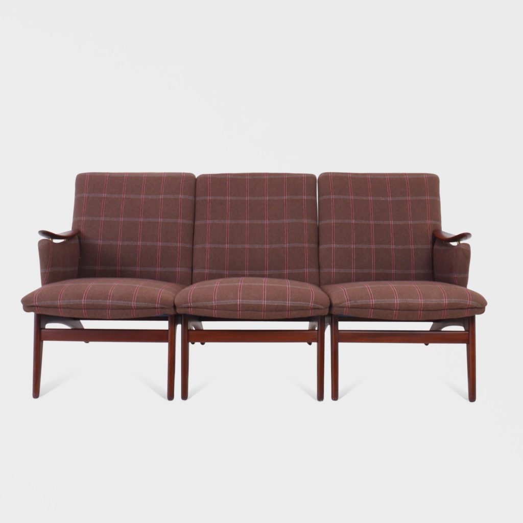 Seksjonssofa mod. Varia for Vatne Lenestolfabrikk, ca. 1955. Rammeverk i teak. Sofen har originalt trekk og er i god vintage stand . Et parmoduler har noe solbleking på ryggen. Totalt 6 moduler. Designer: Gerhard Berg Produsent: Vatne Lenestolfabrikk Land: Norge År: 1950-tallet Tilstand: God vintage stand Mål: H: 78cm H.sitte: 35cm B: 55cm(pr. Modul) pluss hjørne modul D: 70cm Frakt: - Pris inkluderer frakt på strekningen Drammen - Oslo onsdager mellom 15-20 (til gateplan). - Vi sender i hele landet. Ta kontakt for gode priser på frakt. - Lageret er alltid åpent for besøk Tirsdag & Onsdag kl 14-17. Ring 926 22 989 ved ankomst. Disclaimer: Vintage møbler er et produkt av høy kvalitet som varer flere liv av en grunn. Noen har en rik historie, hvor enkelte produkter vil bære preg av dette. Studer derfor bildene godt før kjøp.