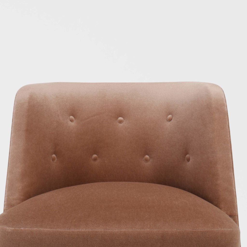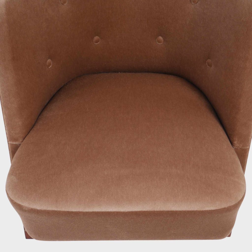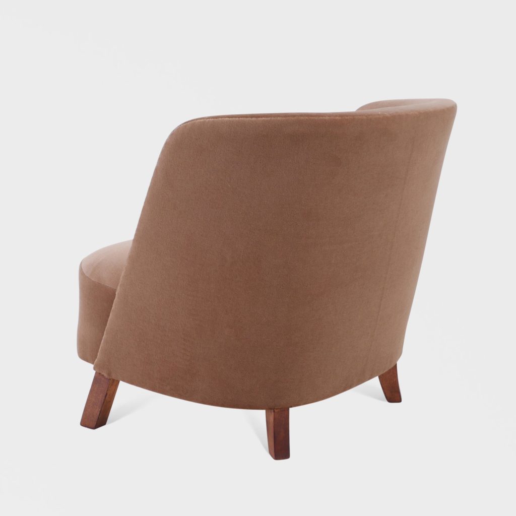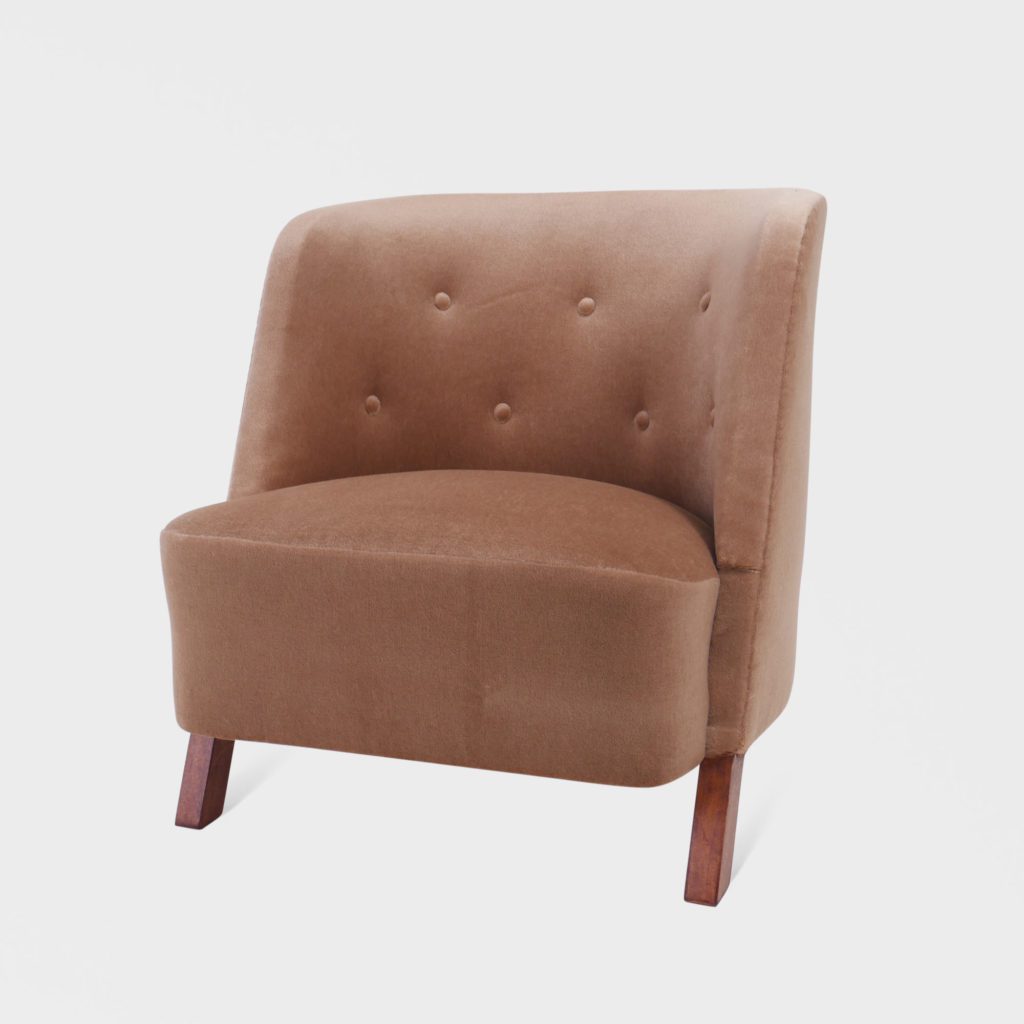 Unike retro lenestoler med flotte former nyomtrukket i nydelig velur av vår møbeltapetserer. Organisk i formene med gode proporsjoner. Ukjent designer. Pris per stol. Designer: Ukjent Produsent: Ukjent Land: Norge År: 1950-tallet Tilstand: God vintage stand Mål: H:67cm H.sete:33cm B:67cm D:70cm Frakt: - Pris inkluderer frakt på strekningen Drammen - Oslo onsdager mellom 15-20 (til gateplan). - Vi sender i hele landet. Ta kontakt for gode priser på frakt. - Lageret er alltid åpent for besøk Tirsdag & Onsdag kl 14-17. Ring 926 22 989 ved ankomst. Disclaimer: Vintage møbler er et produkt av høy kvalitet som varer flere liv av en grunn. Noen har en rik historie, hvor enkelte produkter vil bære preg av dette. Studer derfor bildene godt før kjøp.