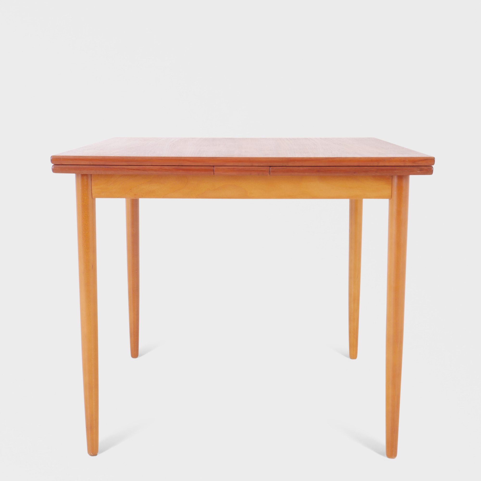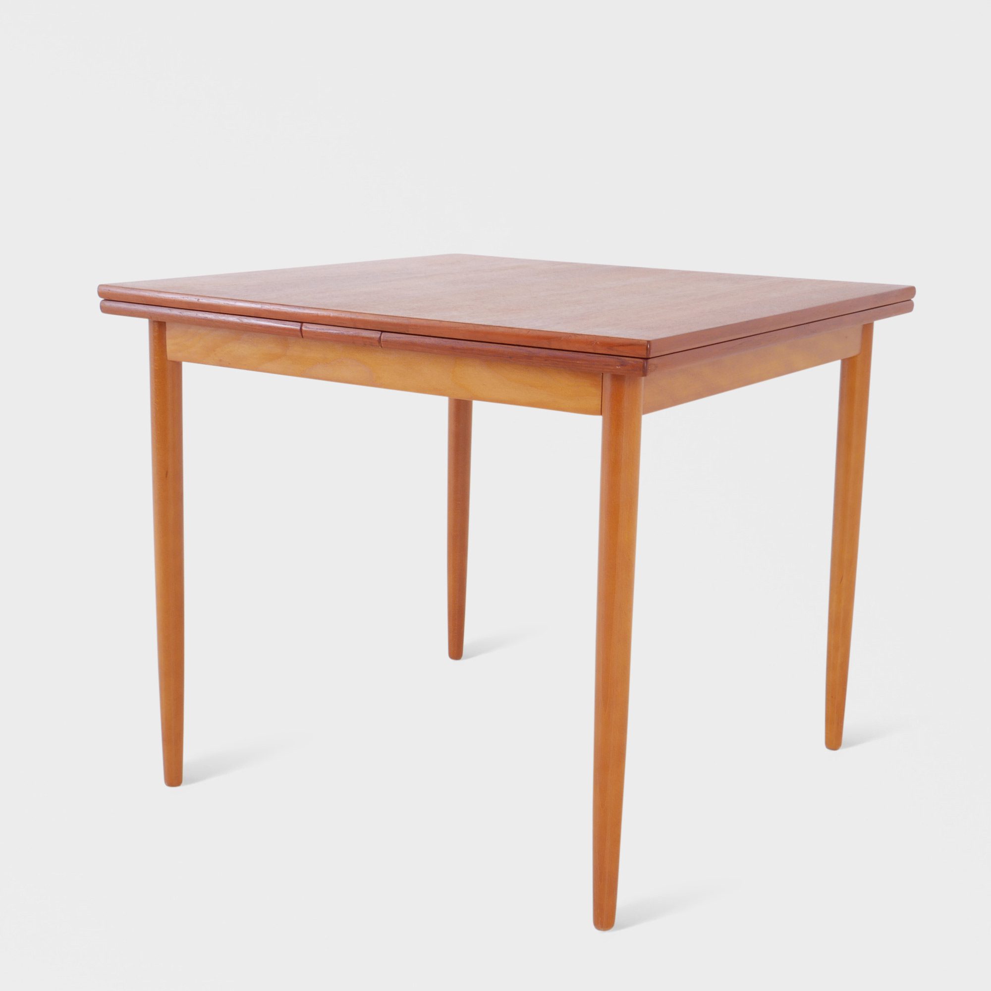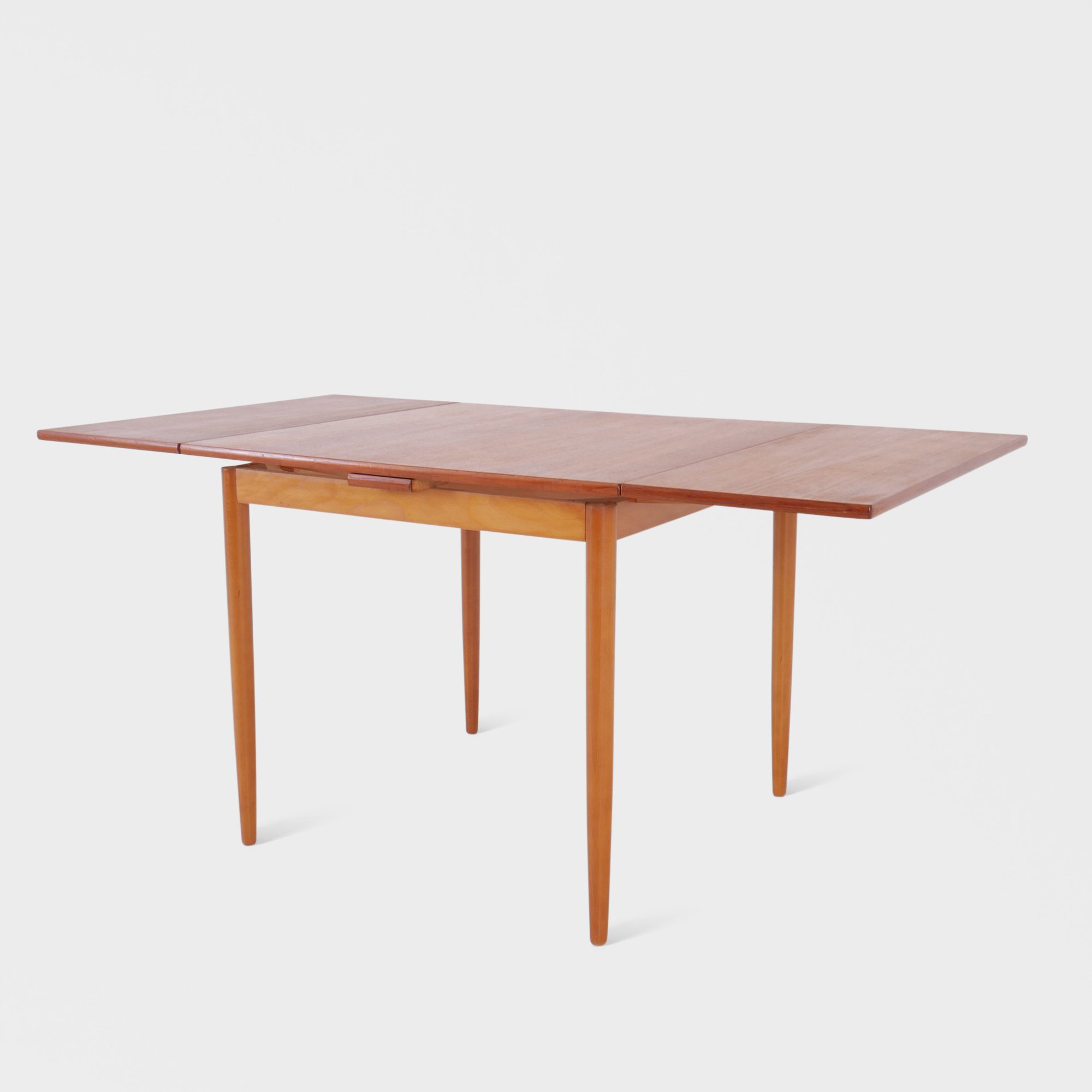 Et nydelig plassvennlig spisebord i teak med hollandsk uttrekk.