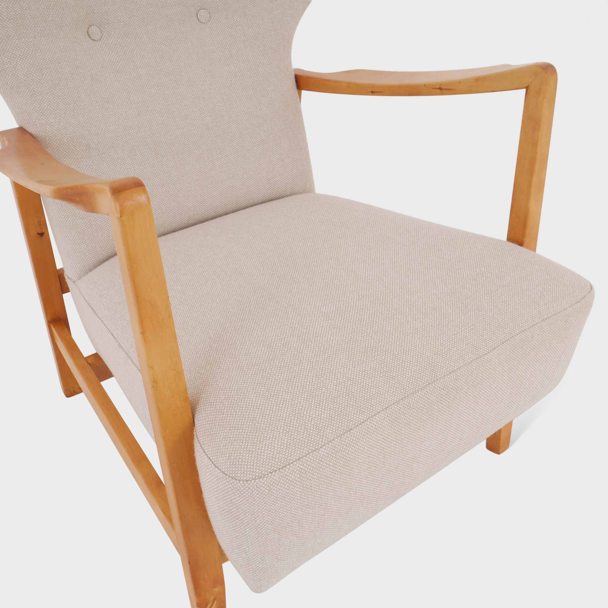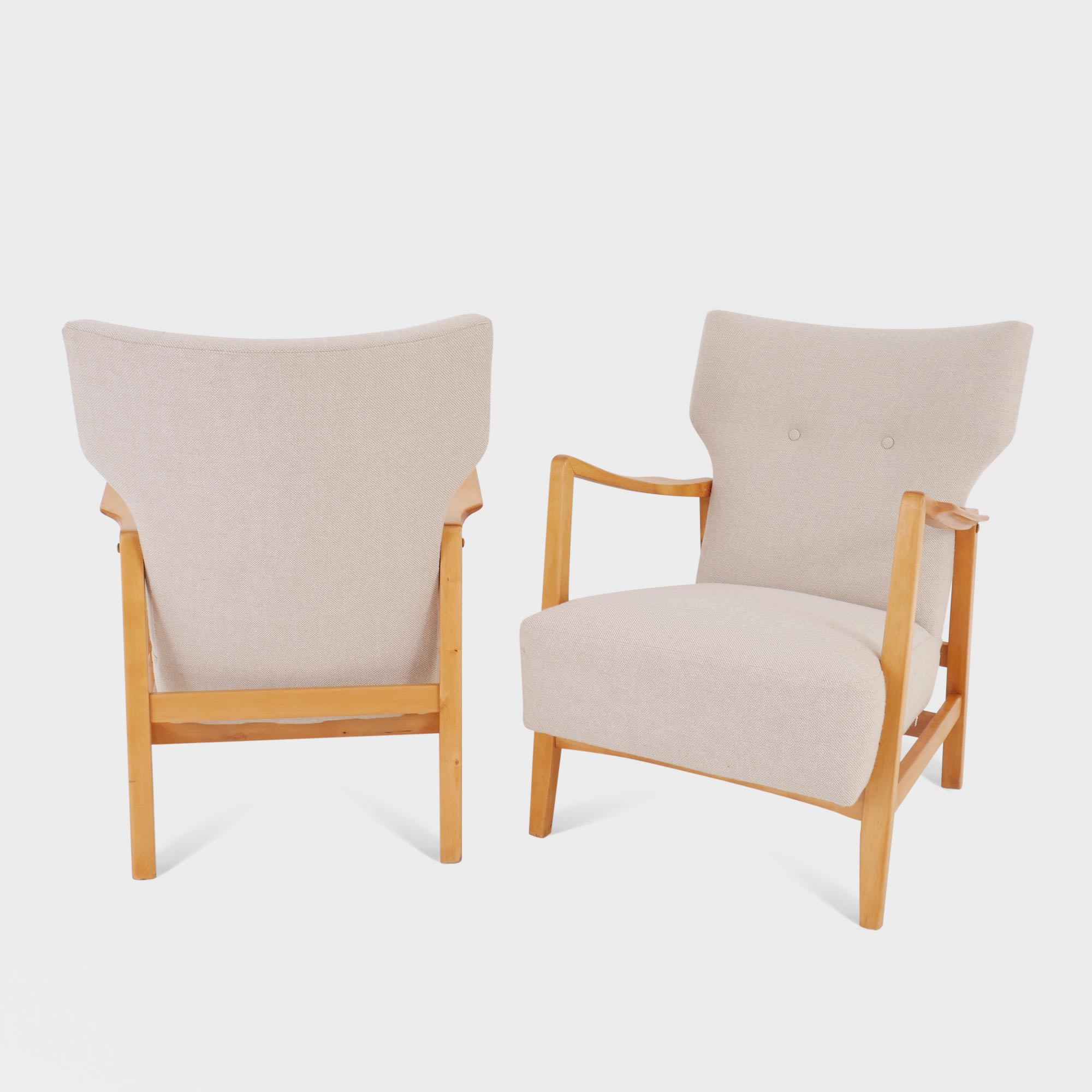 Vakre lenestoler i god kvalitet. Nyomtrukket av vår møbeltapetserer i ullstoffet Hallingdal 220 av Gudbrandsdalen Uldvarefabrik. En nydelig form som sitter godt i rommet.