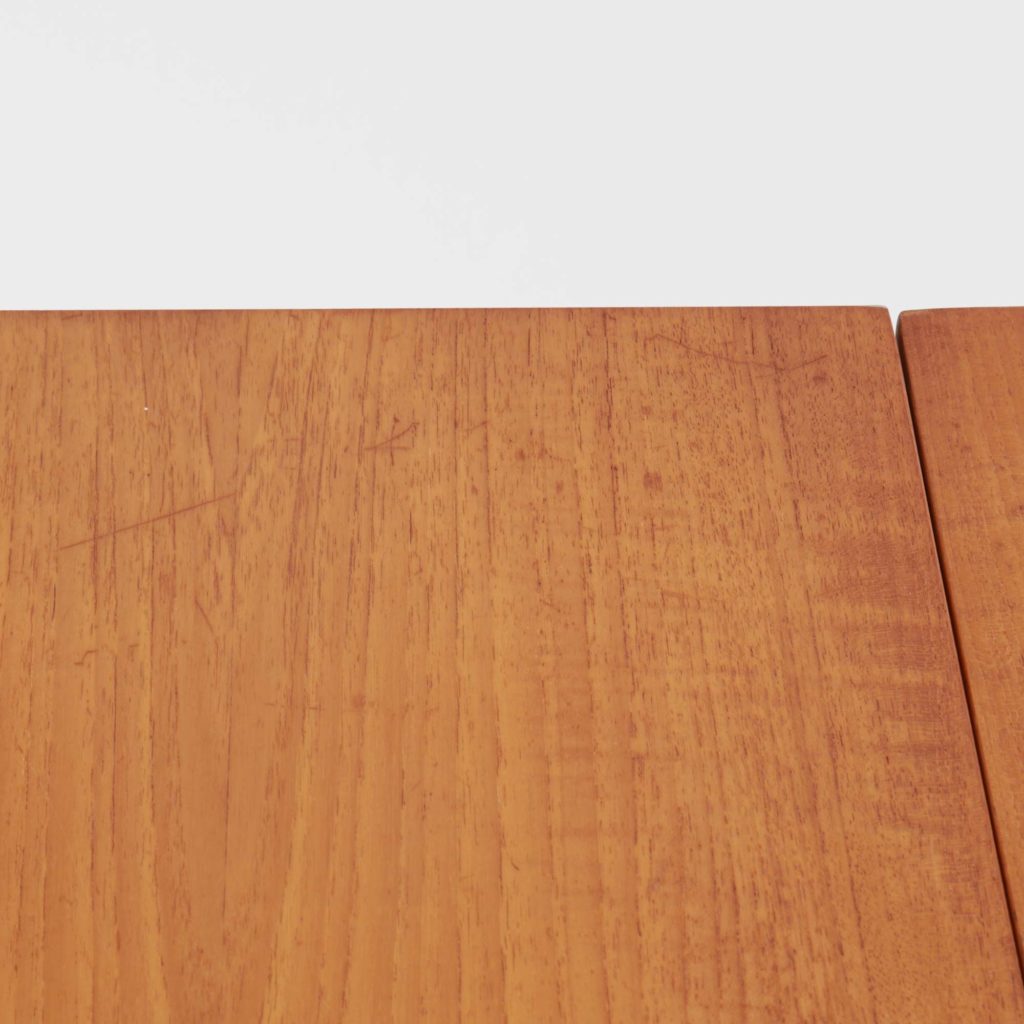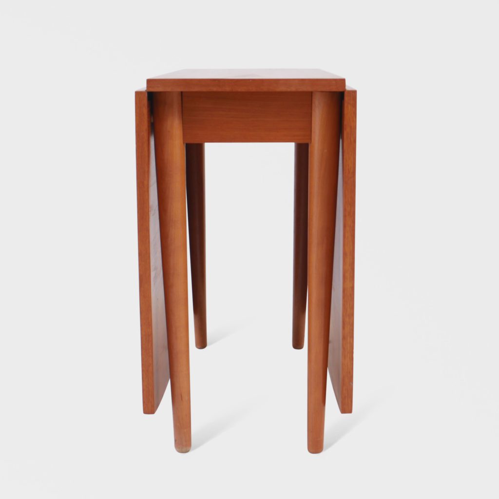 Et nydelig plassvennlig spisebord i teak med hollandsk uttrekk. Designer: Ukjent Produsent: Ukjent Land: Norge År: 1960-tallet Tilstand: God vintage stand Mål: H:74cm L:85cm/157cm (2×36cm) D:85cm Frakt: - Pris inkluderer frakt på strekningen Drammen - Oslo onsdager mellom 15-20 (til gateplan). - Vi sender i hele landet. Ta kontakt for gode priser på frakt. - Lageret er alltid åpent for besøk Tirsdag & Onsdag kl 14-17. Ring 926 22 989 ved ankomst. Disclaimer: Vintage møbler er et produkt av høy kvalitet som varer flere liv av en grunn. Noen har en rik historie, hvor enkelte produkter vil bære preg av dette. Studer derfor bildene godt før kjøp.