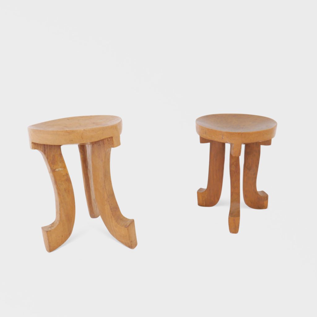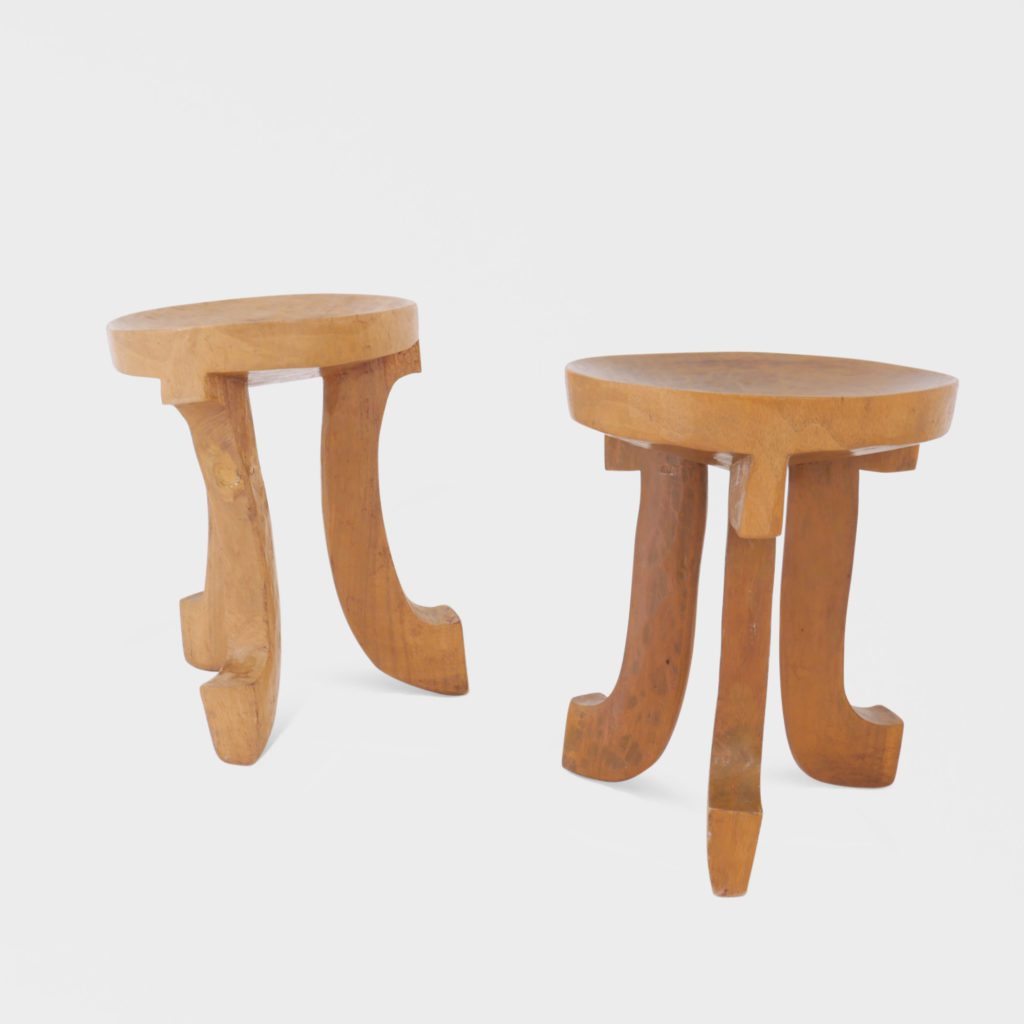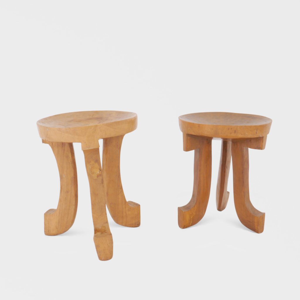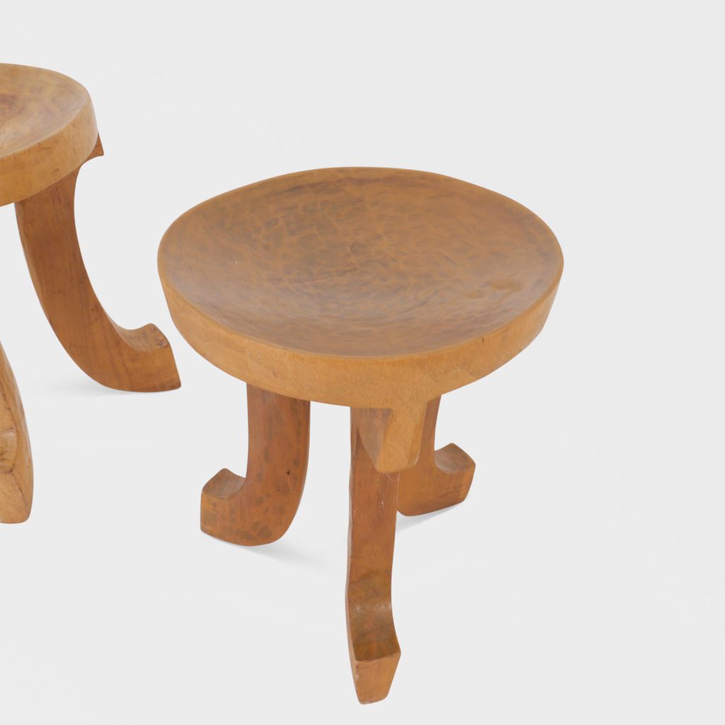 Håndskåret av hel trestamme, med karakteristiske svungne ben og organisk formet sete. Tradisjonell form fra Jimma- og Oromo-folkets stoler, her tolket i norsk utførelse. Rå folkelig karakter og vakker patina. Unike objekter med tydelig håndverksuttrykk – dekorative og funksjonelle. Pris per stk Land: Norge Tilstand: God vintage stand Mål: H:39cm Ø:29cm Frakt: - Pris inkluderer frakt på strekningen Drammen - Oslo onsdager mellom 15-20 (til gateplan). - Vi sender i hele landet. Ta kontakt for gode priser på frakt. - Lageret er alltid åpent for besøk Tirsdag & Onsdag kl 14-17. Ring 926 22 989 ved ankomst. Disclaimer: Vintage møbler er et produkt av høy kvalitet som varer flere liv av en grunn. Noen har en rik historie, hvor enkelte produkter vil bære preg av dette. Studer derfor bildene godt før kjøp.