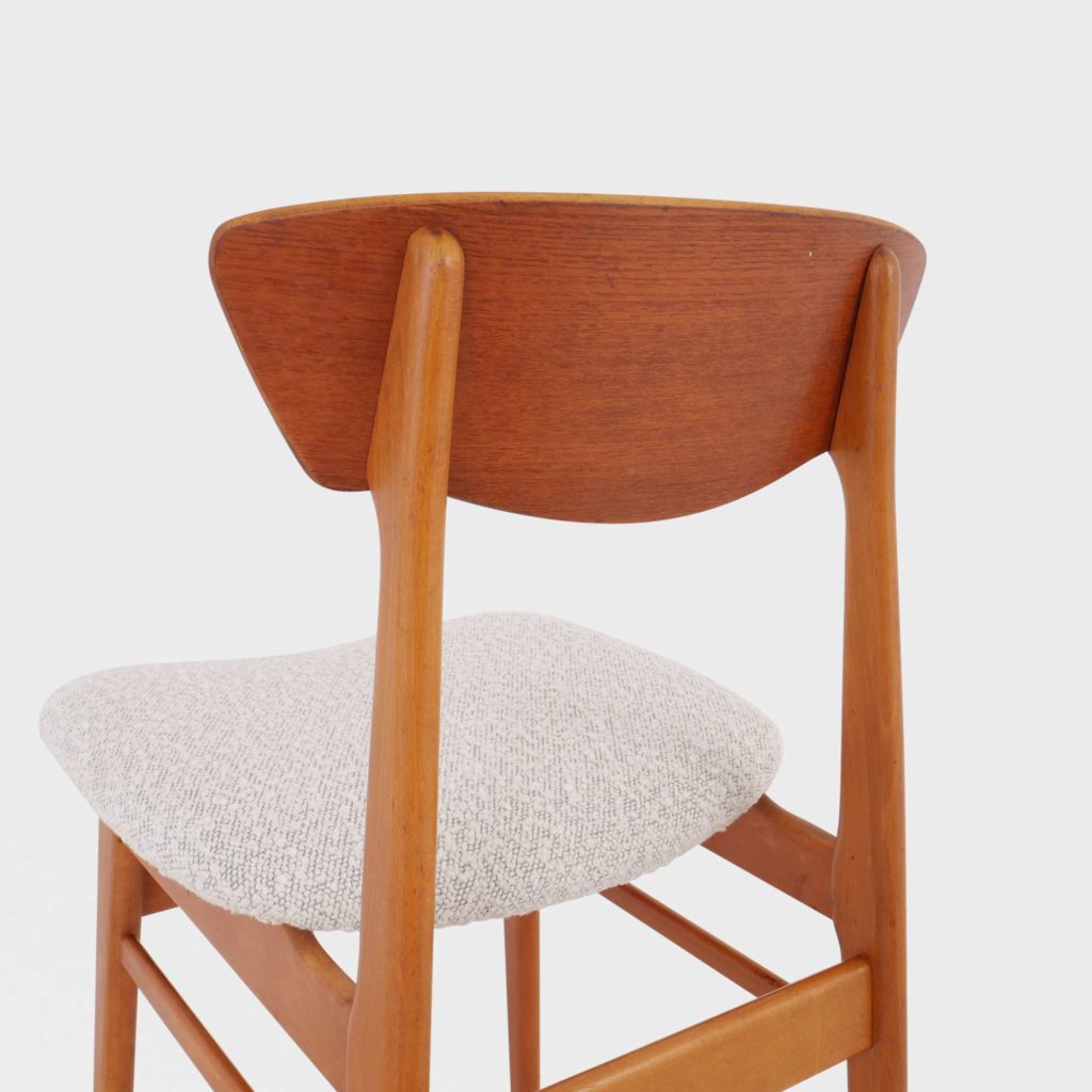 Sett med 6 spisestoler i teak produsert av Eidsfjord Møbelfabrikk. Klassisk skandinavisk stil av høy kvalitet med behagelige finish, som fremhever den organiske formen på ryggstøtten i heltre som gir stolen god komfort. Nyomtrukket i lys boucle. Stolene er i meget god vintage stand. Selges samlet og oppgitt pris er for alle 6 Produsent: Eidsfjord Møbelfabrikk Land: Norge År: 1960-tallet Tilstand: God vintage stand Mål: H: 85cm H.sitte: 44cm B: 43cm D: 51cm Frakt: - Pris inkluderer frakt på strekningen Drammen - Oslo onsdager mellom 15-20 (til gateplan). - Vi sender i hele landet. Ta kontakt for gode priser på frakt. - Lageret er alltid åpent for besøk Tirsdag & Onsdag kl 14-17. Ring 926 22 989 ved ankomst. Disclaimer: Vintage møbler er et produkt av høy kvalitet som varer flere liv av en grunn. Noen har en rik historie, hvor enkelte produkter vil bære preg av dette. Studer derfor bildene godt før kjøp.