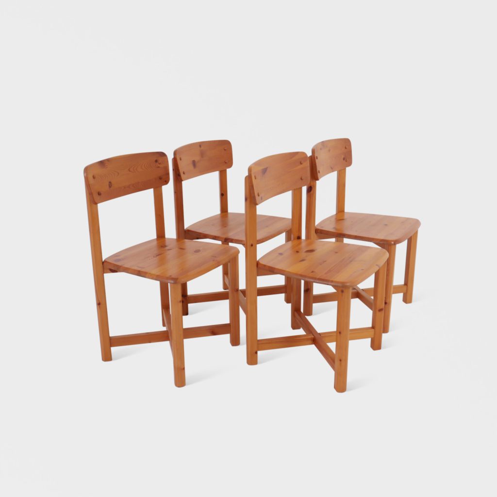 Nydelig stoler utført i furu i stil av Rainer Daumiller fra 70-tallet. Stolene selges samlet og prisen er for alle 4 Designer: Ukjent Produsent: Ukjent Land: Norge År: 1970-tallet Tilstand: God vintage stand Mål: H: 81cm H.sitte: 45cm B: 47cm D: 46cm Frakt: - Pris inkluderer frakt på strekningen Drammen - Oslo onsdager mellom 15-20 (til gateplan). - Vi sender i hele landet. Ta kontakt for gode priser på frakt. - Lageret er alltid åpent for besøk Tirsdag & Onsdag kl 14-17. Ring 926 22 989 ved ankomst. Disclaimer: Vintage møbler er et produkt av høy kvalitet som varer flere liv av en grunn. Noen har en rik historie, hvor enkelte produkter vil bære preg av dette. Studer derfor bildene godt før kjøp.